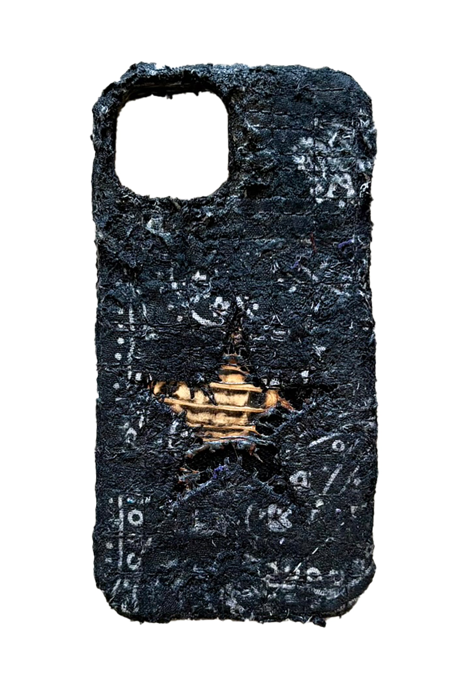 Made from 100% Cotton Denim and Bandanas with a nice wax coating. This case takes hours to make by hand and is truly unique. This case also features a nice stitching a burnt python skin star in the center.