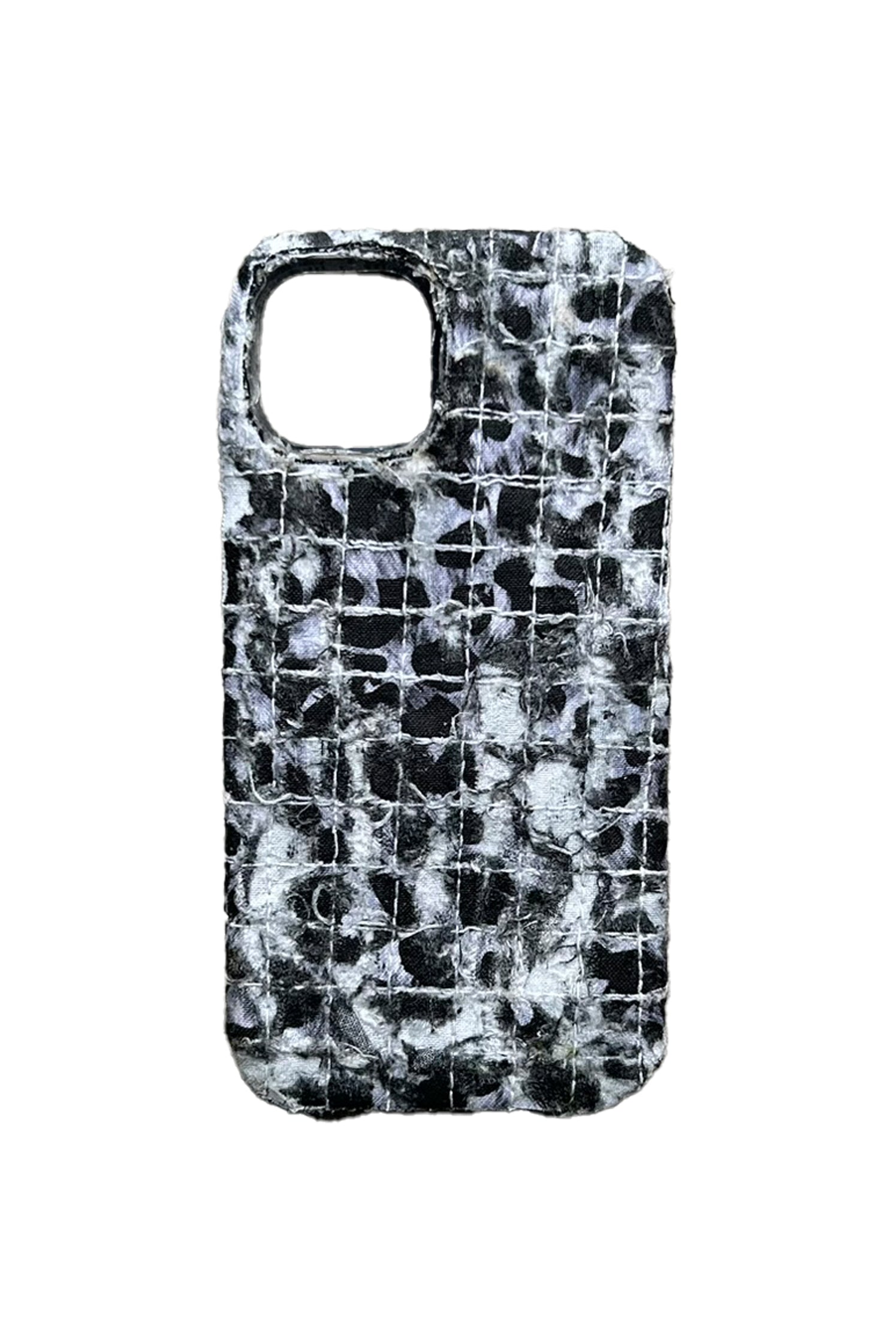 Made from 100% Cotton Denim and Bandanas. Featuring white leopard print that tears to reveal white boro underneath, this case takes hours to make by hand and is truly unique.
